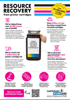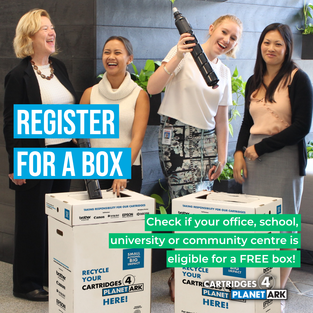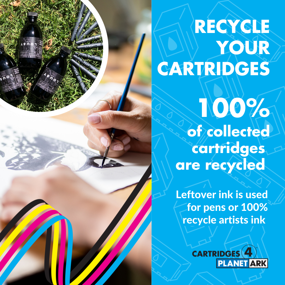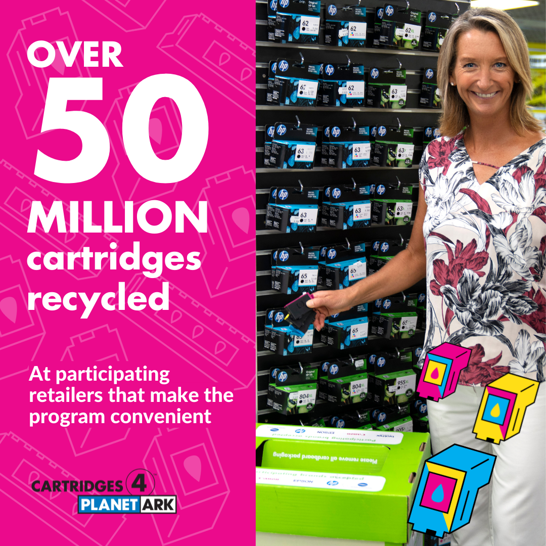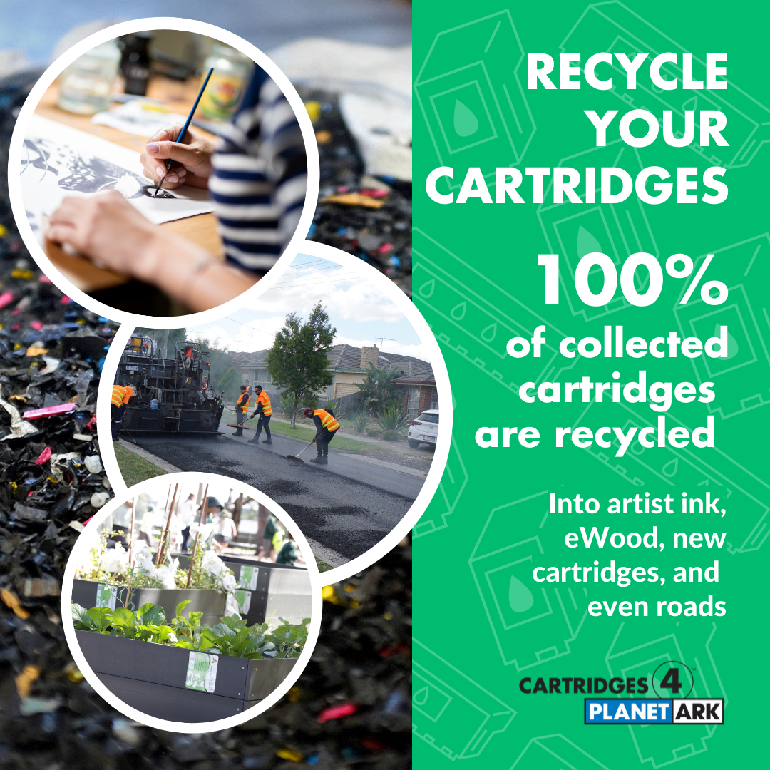 Cartridges 4 Planet Ark is celebrating 20 years of printer cartridge recycling in 2024. We have created a range of materials, to mark the occasion, which you are free to use as a supporter of the program. Use them to share your commitment to Zero Waste to Landfill recycling solution by tagging @PlanetArk and using #cartridges4planetark.