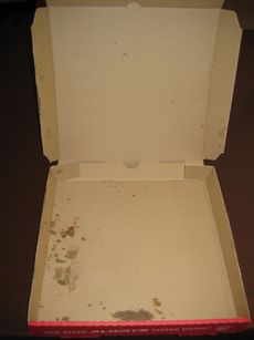 Before putting pizza boxes in your home recycling, check whether your council accepts them. If your council does accept them, just scrape out all the solid food scraps. If the pizza box has a removable cardboard mat take that out too and put it in the garbage. There should be no solid food left in the box.